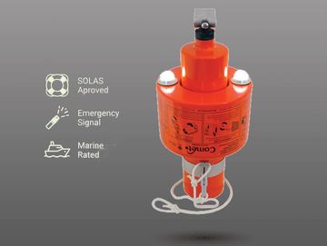 Produces dense orange smoke for 15 minutes and 2 LED lights burn at 2 candela for 15 hours minimum. Signals location of a man overboard by day or night.