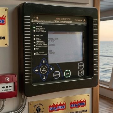 Is an integrated marine fire detection system for fire extinguisher supervision and engine and machinery shutdown. 12/24 VOLT DC Designed specifically as a marine integrated fire system to work.